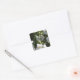 Blume und grüne Blätter in einem weißen Sommergart Quadratischer Aufkleber