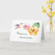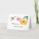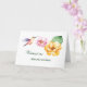Lasse ihren Schmerz nach dem Unfall weg. Senden Sie ihnen Ihre guten Wünsche mit dieser wunderschön gemachten Abbildung eines pfirsichorangen Kolibri mit lila Flügeln, die über diesen rosa und gelben Blumen fliegen.