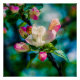 Makroansicht der cremefarbenen Krabapfel-Blume und rosa Knospen in einem Krabapbaum in Blüte. Farbenvolles Foto der Frühlingsbelebung der Natur und blühende Bäume und Blume. - Blume machen Menschen immer besser, glücklicher und hilfsbereiter; sie sind Sonnenschein, Nahrung und Medizin für den Geist. (Luther Burbank)