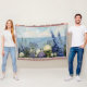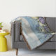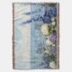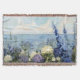Ein sanftes Blumengemälde an der Küste in hellen Pastellfarben mit lila, blauen und weißen Blume, einer zarten Vegetation und einem ruhigen Blick auf das Meer in der Ferne, perfekt für Zuhause im Cottage- oder Küstenstil.