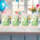 Trendy kann Glas bietet Aquarellbilder von weißen frangipani Blume mit großen Monstera-Blätter auf blassblau und gelb gestreiftem Hintergrund. Personalisieren Sie Ihre Daten mit Namen oder Monogramm. Ideal für Hochzeitsgeschenke oder andere Hochzeitsfeiern!