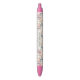 Ein Stift mit einem schönen französischen Motivbild. Hübsche Blume, Eiffelturm und Schmetterlinge. Die Farben sind pink, blau, pfirsichfarben und creme.