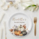 Diese eleganten Teller aus dem Party bieten ein Blumenmotiv im Herbst mit Kürbissen. Ein Aquarellbild von vier farbigen Kürbissen wird unten abgebildet. Sie sind mit einem Strauß getrockneter Blume in schönen Herbstfarben dekoriert. Sie sind wunderbar für ein Brautparty, eine Geburtstagsfeier, eine Hochzeit oder jede andere gemütliche Herbstfeier.