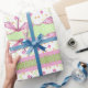 Dieses skurrile Verpackungspapier zeichnet sich durch eine hübsche Blume und ein rosa Libellendesign aus. Benutzen Sie dieses Papier für eine Babydusche und andere besondere Anlass Geschenke.
