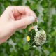 PLdesign Foto aus weißem Kronleuchter und kleiner gelber Kronleuchter Blume im Hintergrund auf grünem Gras.