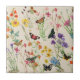 Ein wunderschönes Aquarelldesign mit Blume und Schmetterlingen. Eine bunte Anordnung von Blume und Schmetterlingen in einem Blumengarten. Ein ideales Design für jeden, der farbenprächtige Schmetterlinge, Aquarellblumen, Blumenbilder und botanische Themenkunst Liebe findet.