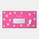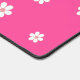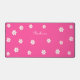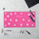 Blume und Skriptkalligraphie auf Neon Pink Schreibtischunterlage