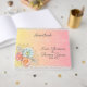 Elegante weiße Spitzen und farbenfrohe Blume über rosa und gelbe Gradienten