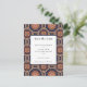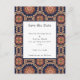 Save the Date Postkarte mit einem sich wiederholenden Muster dekorativer Elemente in Blume, Stern und Sonnenformen.