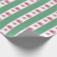 Blume und Streifen in Aquarellfarbe Rosa und Grün Geschenkpapier