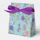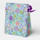 Monogramierte coole Retro-Blume und Vogelmuster. Hellblaue Obertöne mit lila Akzenten in Grün und Korallen