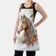 Ein wunderschönes Aquarellbild des Kopfes eines hellkastanienfarbenen Pferdes mit lila, blau und beige Mane wird gerahmt durch hübsche, gedämpfte Rose und Hibiskus Blume Set zwischen blau und braun. Diese sind ideal für Pferdefreunde und alle, die nach einzigartigen Geschenken für ihr Brautparty suchen. Feiern Sie Ihr Land; Western; Texas oder rustikale Scheune fallen Grillen oder Outdoor Braai mit diesen leicht zu füllen Taschen.