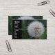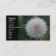 Diese hübsche, blumengeschmückte Visitenkarte zeigt ein wunderschönes Foto einer Blume mit einem Samen. Das Foto wurde mit Makrofotografie für ein detailliertes Ergebnis aufgenommen. Sie können alle einzelnen weißen, flauschigen Samen sehen, die gerade bereit sind, im Wind wegzublasen. Die Blume befindet sich neben dem anpassbaren Text auf der Kartenvorderseite. Die Blume des Löwens bedeckt die Rückseite der Visitenkarte.