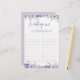Die "Blume Wedding A-Z Brautparty Game Card" ist eine angenehme und kreative Aktivität für Brautpartys. Dieses Spiel bietet wunderschöne lila Blume-Designs, die die Gäste inspiriere, ihre Traukleider zu entwerfen. Mit seinem charmanten Blumenmotiv fügt dieses Spiel der Feier eine Touch Eleganz hinzu. Lass deinen Gästen mit diesem lustigen und einladenden Brautparty ihren künstlerischen Flair und ihre Fantasie zu präsentieren!