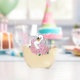 Ein weißer Schwan mit rosa Blume und einem blauen Hintergrund