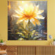 Eine weiße und gelbe Blume strahlt die Wärme der Sonne aus und strahlt lebendige Energie auf die Leinwand aus. Kühne, ausdrucksvolle Pinselstriche tanzen über die Oberfläche und erfassen das Wesen der Schönheit der Natur in einer Symphonie von Farbe und Licht. Die weißen Blütenblätter der Blume leuchten mit einer ätherischen Helligkeit, beleuchtet durch die goldenen Sonnenstrahlen. Gelbe Farbtöne prallen aus, geben der Szene Wärme und Vitalität, während orangefarbene Streifen Tiefe und Kontrast verleihen. Der Hintergrund strahlt in dynamischen Tönen, die ein Gefühl von Bewegung und Atmosphäre hervorrufen.