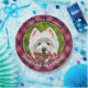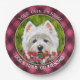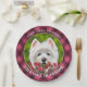 West Highland White Terrier und rosa Blume. Westie-Hund pinkelt über einen blühenden Busch. Sophie. Copyright © 2025 Angi Laframboise. Alle Rechte vorbehalten. Hunde der schönen Kunst züchten Geschenke für Hundefreunde.