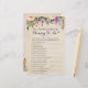 Testen Sie, wer die Mama-to-be am besten kennt, mit unserer bunten Blume "How Well Do You Know the Mommy to Be" mit Vintagem Hintergrund. Die Gäste füllen die Felder aus, um einige grundlegende Fragen zur junge Mutter zu beantworten. Wer das Richtigste bekommt, gewinnt! Karo in unserer großen Auswahl an Babyduschen, die in der Babydusche "Colorful Floral" koordiniert werden!