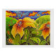 Glossy Art Poster. Ideal für Landschafts- und Surround-Liebhaber, die Liebe kühnen Farben! Lebhafte, wirbelnde Golden, Blues und Grüntöne bilden diese Landschaft üppiger Hügel und leuchtender Blume, die auf der Seite zu tanzen scheinen. Dieses Kunstwerk wird jedes Zimmer aufheitern. Der Name des Künstlers ist unten gedruckt.
