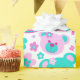 Fun Pastelltöne von Rosa und Aqua Blau grüne Packpapier. Helle Kindergeburtstage Teddybären Gesichter und grafische Blume wiederholen Muster Packpapier, perfekt für Mädchen 1. Geburtstag. Personalisieren Sie mit Ihrem eigenen kleinen Mädchen Namen, liest derzeit Sophia 1. Grafisch einzigartig von Sarah Trett entworfen.