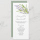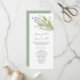 Diese Aquarellhochzeiten bieten lila Lavendel-Blume. Verwenden Sie die Vorlagenfelder, um Ihre Dienstreihenfolge hinzuzufügen. Die Karte kehrt zu einer soliden, grün schlüpfen Farbe zurück. Eine schicke und dennoch botanische Wahl für Gartenhochzeiten mit Wildblume. Einzigartige Kunst und Design von Victoria Grigaliunas von Do Tell A Belle.