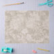 Cremefarbene Schablone oder Scrollwork-Blume auf sandfarbenem Hintergrund. Ideal für decoupage Kunstwerke, Papierhandwerk oder Geschenkverpackungen.