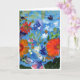 Blumen auf blauer Anmerkung zum Hintergrundkarte Karte