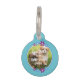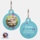 Liebevoll gestaltete türkise Hundemarke - verziert mit einer Umrandung aus kleinen Blumen in in blau und lila - personalisierbar mit dem Foto deines geliebten Haustieres auf der Vorderseite und auf der Rückseite kannst du wichtige Daten hinterlegen, wie den Namen deines Hundes, Telefonnummer und Ort, auch eine besondere Geschenkidee für Hundebesitzer
