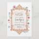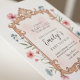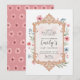 Feiern Sie eine süße Babygirl mit diesem eleganten floralen Einladungsdesign zur Babyparty. Mit einer weichen blassrosa und staubblauen Blumenanordnung mit einem verzierten vintage-goldenen Rahmen schafft dieses Layout einen romantischen und zeitlosen Look. Perfekt für ein femininines Babyparty-Thema mit klassischer Typografie und zarten botanischen Akzenten, die sich warm, elegant und charmant anfühlen.
