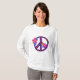 Ein helles lila Friedenssymbol mit Blumen des Goldes, Blau und heißes Rosa auf Friedenssymbol T - Shirts, Tassen, Knöpfen, Taschentaschen und anderen Einzelteilen, dass gelassen jeder wissen Sie, glauben Sie an Weltfrieden! Sie können diese Blumen-Friedenssymboleinzelteile auf der Stelle unter Verwendung des einfachen verfügbaren Kundenbezogenheitswerkzeugs besonders anfertigen. Addieren Sie einen Namen oder anderen Text!