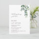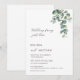 "Nichts Besonderes, nur Liebe" Casual-Hochzeitseinladung. Diese elegante, minimalistische zeitgenössische gebogene Hochzeitseinladung zeigt wasserfarbene, gemalte Eukalyptusblätter auf weißem Hintergrund.