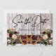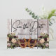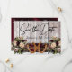 Dieses Design hat eine rustikale Eleganz und bleibt einem einfachen Thema treu. Hintergrund aus altem Scheunenholz mit burgunderrotem Band, verknoteten Hufeisen und wilden Blumensträußen mit Platzhaltern für das Datum auf der Vorderseite. Ein Platzhalter für ein Foto des Paares befindet sich auf der Rückseite der Karte mit Namen und dem Schriftzug "Gettin' Hitched" auf passendem Bandhintergrund. Entwickelt, um mit der Kollektion "Gettin' Hitched - Horseshoes, Ribbon & Lace" koordiniert zu werden. Um Details zu ändern, klicken Sie auf "Personalisieren". Um den Text zu verschieben oder die Textgröße, Schriftart oder Farbe zu ändern, klicken Sie auf "Für weitere Anpassungen klicken".