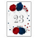 Blumen in Rot- und Marineblau, silberne Blätter Ho Tischnummer