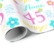 Moderner Text und Blume entwerfen personalisiertes Altersgeburtstagsmädchengeschenk-Verpackungspapier und kennzeichnen grafische Blumen und Ihren eigenen Namen des Buchstaben vier im Aqua, im Rosa, im Weiß und im Gelb. Personifizieren Sie mit Ihrem eigenen Namen (merken bitte nicht alle Namen passt wegen der Art des Schriftartes) und Alter, liest z.Z. Anna 45, andere Namenslängen ist verfügbar, wenn Sie Unterstützung in Verbindung treten mit mir bitte benötigen, glücklich, ein für Ihren Namen bekanntzugeben. Eine große Weise, eine personalisierte Touch zu den Geburtstagsgeschenken zu geben. Einzigartig entworfen durch Sarah Trett.