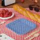 Blumen Karomuster Nr. 01 - Hellblau Pappteller