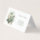 Diese Visitenkarte wird in einem einfachen klassischen Weiß mit einem reizenden Blumenstraußdruck in Salbeifarbtönen auf einer gefalteten Karte gezeigt.