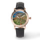 Uhr, Klassische Damenuhr mit schwarzen Lederarmband