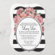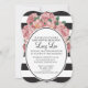 Schöne Duscheinladung - Schwarz-Weiß Streifen in einem klassischen ovalen Design, geschmückt mit aufblühenden Blume. Fügen Sie die Klammer Edge für eine besondere Touch hinzu!