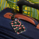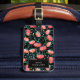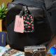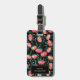 Blumen-u. Beeren-Muster - rosa u. schwarz - Name Gepäckanhänger