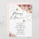 Blumen und Herz Mommy to Bee Baby Dusche Einladung Sweet Biene Thema Mädchen Babydusche Einladung mit zwei Bienen, Wärmeleitungen und zwei blumigen Arrangements. Diese Mama to bee Bridal Dusche Einladung enthält auch eine moderne Kalligraphie-Position.