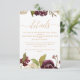 Einfache und hübsche goldfarbene Kalligraphie-Schrift auf weißem Hintergrund mit einer schönen Aquarellwand und dunkelbordeauxfarbenen Marsala-Rücken Hochzeitsgast Detail.
