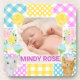 Blumen- und Karo-Fotorahmen Neugeborenes Baby Getränkeuntersetzer