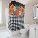 Blumen und Schwarz-weißer Fliesen Duschvorhang