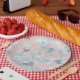 Blumen und Vögel , Hintergrundfarbe der Rose Pappteller