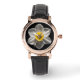 Uhr, Klassische Damenuhr mit schwarzen Lederarmband