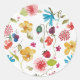 Das ist eine originelle Aquarellfarbe von Kristina Anderson, aufgedruckt auf einem runden Aufkleber. Whimsikal und hell, Blume und Beeren.