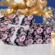 Ein Mischbouquet mit Veilchen, Blüten, Rosa und Weiß, Blume auf einem schwarzen, grünen Hintergrund.