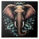 Ein aufwändig entworfener Elefant steht majestätisch, mit schönen Blumenmustern geschmückt. Das sanfte Licht der Dämmerung verstärkt seine Eleganz, symbolisiert Kraft und Schönheit in der Natur.
