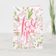 Diese elegante Grußkarte enthält den Satz "Liebe du" in fließend rosa Schrift, gerahmt durch eine delikate Anordnung rosa Blüten, stilisierte grüne Blätter - einschließlich herzförmiger Akzente - und subtile Wirbel und Punkte. Das Innere zeigt einen ergänzenden rosa Hintergrund mit Beispieltext, der lautet: Mehr als Wörter können sagen. Alles Gute zum Geburtstag. Klicken Sie auf "Diese Vorlage personalisieren", um die innere Nachricht zu ändern oder zu entfernen, um jeden Anlass, einschließlich Jahrestag, Valentinstag, oder einfach nur, weil Anzug.