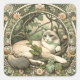Blumenbeige und Jugendstil-Katze Quadratischer Aufkleber
